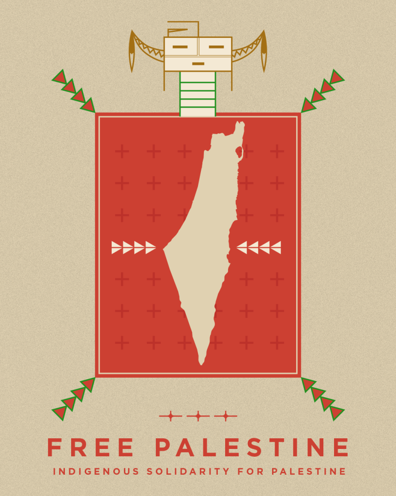 In the spirit of all our relations and international solidarity, as Indigenous Solidarity with Palestine (ISP), we call on Indigenous peoples, elected Indigenous officials, governments, organizations, businesses, artists, schools, intellectuals, knowledge keepers, human rights activists, and land and water defenders to comprehensively and consistently boycott and divest from all Israeli public institutions and complicit private companies as a contribution to the movement to end the Zionist occupation and colonization of Palestine.