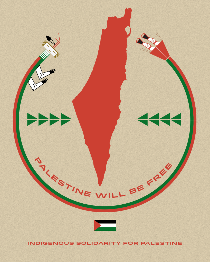 The Israeli settler project draws most of its inspiration and support from Europe and the Anglo-colonial powers that include the United States, Canada, Australia, and New Zealand. Recognizing the alliance our colonizers have with Israel and the oppression of Palestinians, as Indigenous peoples, we condemn Zionism as a racist, genocidal, and settler-colonial ideology. We reject racism and colonialism in all its forms, and we uphold the right of colonized peoples to resist their oppressors.