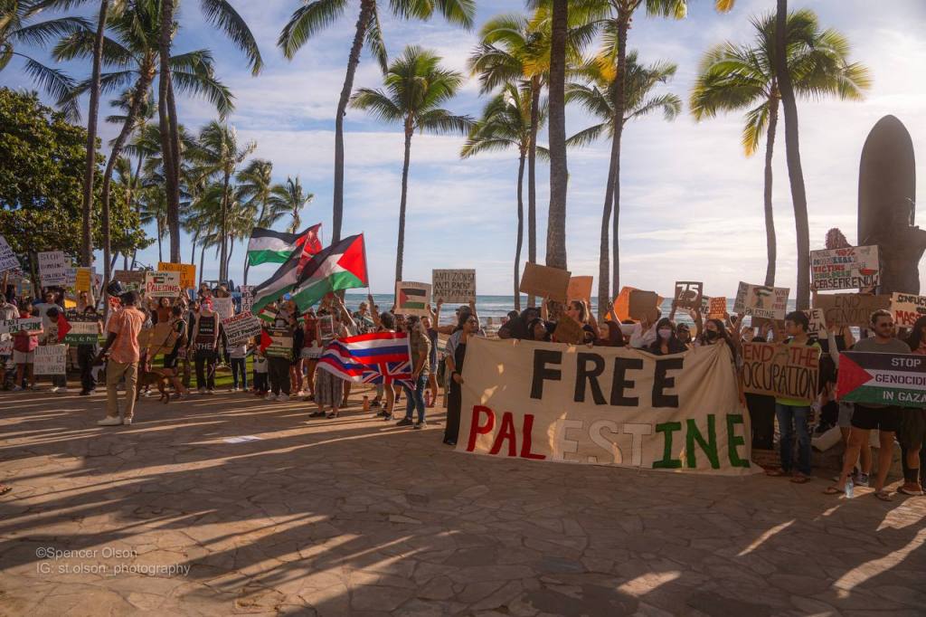 Seeing Palestinians escape on October 7, 2023 from, what international human rights organizations like the Norwegian Refugee Council refer to as, the world’s largest open-air prison in Gaza, I still had dirt on my boots from Puʻu Kūkahauʻula at the summit of Mauna Kea. Piloting a bulldozer, Palestinian civilians widened an opening in the apartheid wall and brought down one section of the border fence near Nir Oz. “It was unbelievable. It felt surreal,” writes Palestinian journalist Mariam Barghouti in Al Jazeera, “[f]ew in the world would understand our feelings in that moment. Perhaps political prisoners might.” “In this context,” she goes on, “seeing those images and videos of the prison wall torn down in Gaza is liberating. Their symbolic power cannot be overstated.” In an interview on The Red Nation Podcast, I describe that exact moment as an expression and feeling of jubilation, in the spirit of what Barghouti lucidly speaks to, and an excited interest for what Kanaka Maoli might specifically learn from this liberation struggle and how we might stand in solidarity with Palestinians as they have with us.